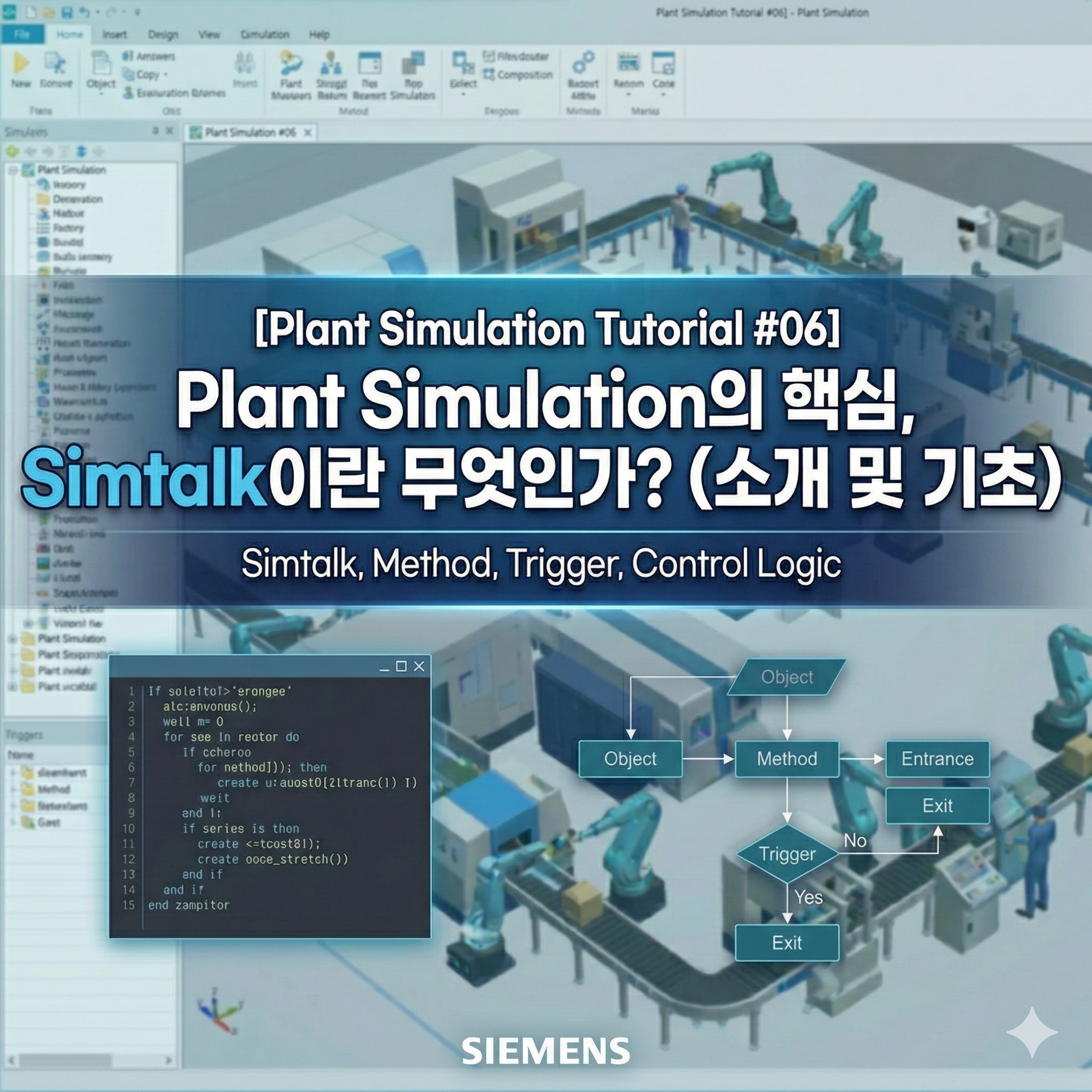 안녕하세요! 오늘은 지멘스(Siemens)의 Plant Simulation을 더 강력하게 만들어주는 프로그래밍 언어, Simtalk에 대해 알아보는 첫 번째 시간입니다.